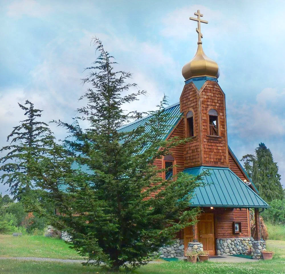 St. Herman’s Orthodox Church is our church in Port Townsend. The parish was established in the 1990s and was built by its founding priest. We love the community there. Everyone is generous & tight-knit; always looking to help each other. Our priest, Fr. Josef, is very kind and knowledgeable. The building is cozy and cabin-like, tucked into a quiet neighborhood. On entering the church, you will see lots of saints’ likenesses on the walls beside decorations.